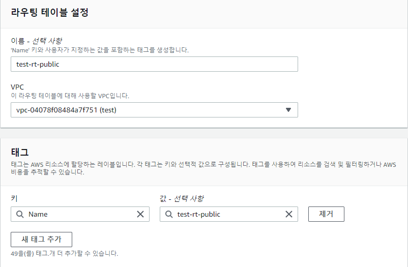 Public subnet과 연결할 라우팅 테이블