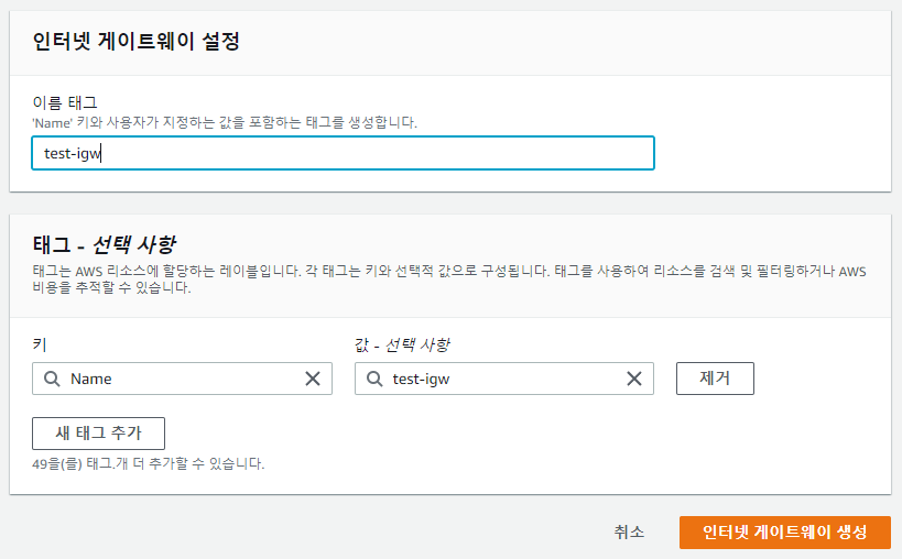 - Internet Gateway 연결
